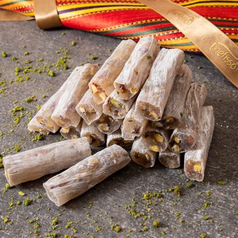 Für Süßigkeitenliebhaber ist die Finger-Box ein Muss. Sie ist die perfekte Synthese aus Bonbons und Lokums, zarter als klassische Bonbons (mit weniger Zusatzstoffen), die Süße von Lokums mit Pistazien und vielfältigen Aromen. Die Finger sind extra zart und köstlich, eine echte traditionelle Süßigkeit, komplett handwerklich hergestellt.